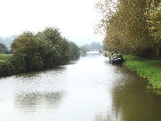 Looking to the South, the Grand Union Canal seen from the River Tove Weir.