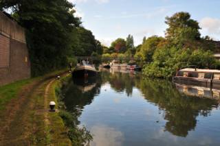 Looking to the East, the Grand Union Canal seen from Dock Road Bridge No.210.