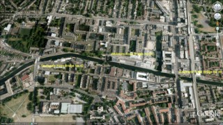 | Le Pont n°45 de la Kingsland Road vu par Google Earth. |