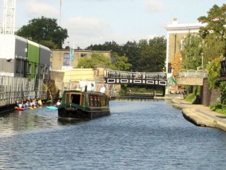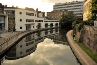 Looking to the South, the Regent Canal to the East of Royal College Street Bridge No.28.