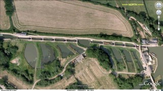 | Les Ecluses n°8 à 12 de Foxton vues par Google Earth. |