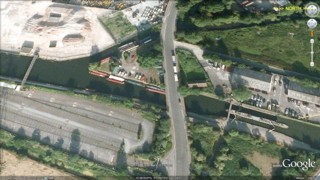 | L'Ecluse n°14 de Ponder's End vue par Google Earth. |