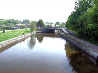 Les regards portés vers le Nord, la Lee Canalisée vue de l'Ecluse n°11 de Waltham Town.