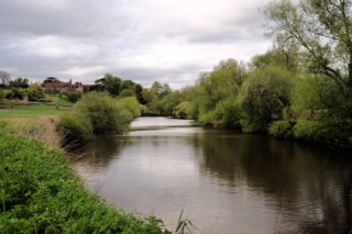 Looking to the West, the River Medway seen from Yalding Bridge.