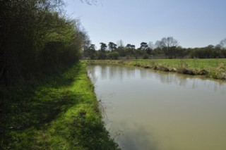Looking to the West, the Oxford Canal to the West of Tunnel Bridge No.137. At the back, Fenny Compton Marina.
