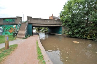 Looking to the South, the Worcester & Birmingham Canal to the North of Lowesmoor Railway Bridge No.10.
