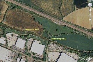 Les regards portés vers l'Ouest, le Canal de Worcester & Birmingham à l'Est du Pont n°22 de Tolladine.