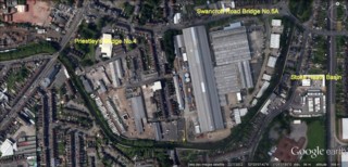 Priestley's Bridge No.4 seen by Google Earth.