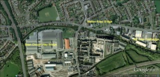 | Le Pont de la Brian Clough Way vu par Google Earth. |