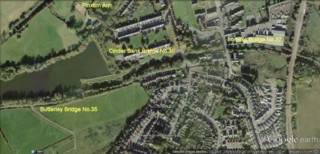 | Le Confluent de Codnor Park vu par Google Earth. |