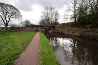 Looking to the South, the Caldon Canal seen from below Redhills Bridge No.16.