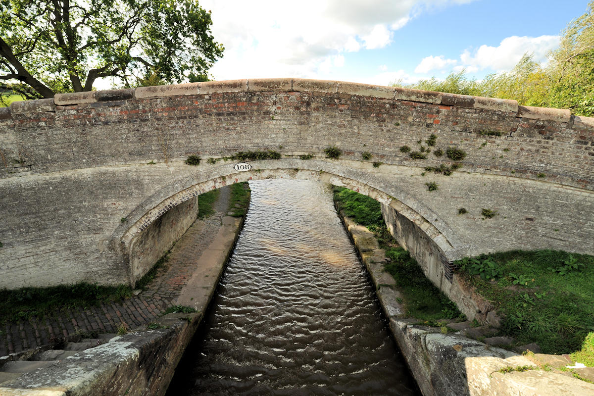 Les regards portés vers l'Est, le Canal de Shropshire Union vu de par-dessous du Pont n°109 du Moulin de Bate.