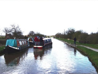 Les regards portés vers l'Est, la branche de Middlewich du Canal de Shropshire Union à l'Ouest de l'Écluse n°1 de Cholmondeston.