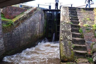 L'Écluse n°1 de Cholmondeston vue de la Passerelle de l'Écluse.