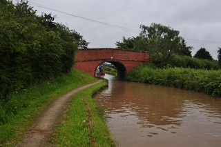 Looking to the North, the Middlewich Branch of the Shropshire Union Canal seen from below Hughes Bridge No.25.