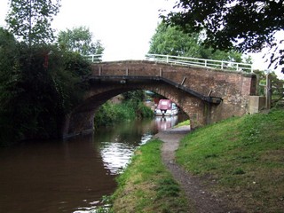 Looking to the South-East, the Trent & Mersey Canal seen from below Brewer's Bridge No.64. At the back, Coal Board Bridge No.63.