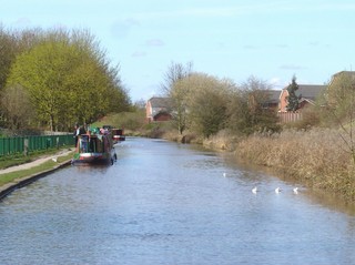 Les regards portés vers le Sud-est, le Canal de Trent & Mersey au Nord-ouest de l'Écluse n°74 de Middlewich.