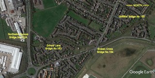 Le Pont n°183 de la School Lane vu par Google Earth.