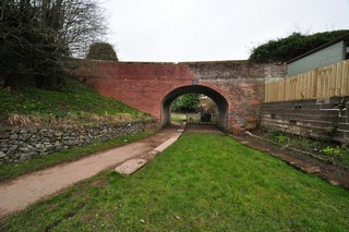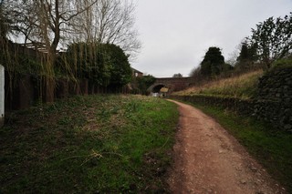 Looking to the West, the site of Whitchurch Branch of the Llangollen Canal seen from below Meadowcroft Bridge.