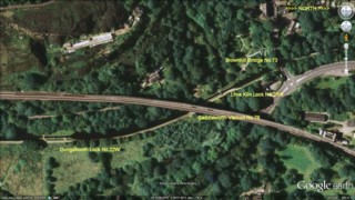 Le Petit Canal d'Huddersfield vu par Google Earth.