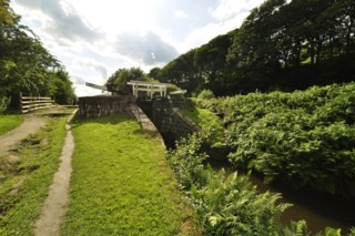 | Le Petit Canal d'Huddersfield vu par Google Earth. |