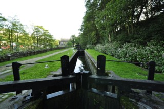 Les regards portés vers le Sud, le Petit Canal d'Huddersfield vu de l'Ecluse n°29E du Mont-Blanc.
