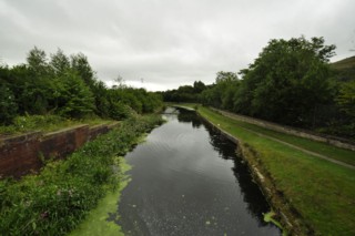 Les regards portés vers le Nord, le Grand Canal d'Huddersfield au Nord du Pont n°5A de Longlands.