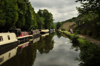 Les regards portés vers le Sud-est, le Canal de Rochdale vu de l'Écluse n°8 de la Filature de Mayroyd.