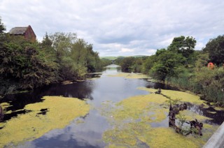 | Les regards portés vers l'Est, le Canal d'Ulverston vu du terminus du canal. |