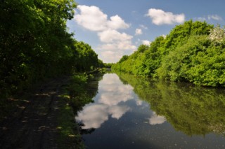 Looking to the East, the Stainforth & Keadby Canal to the West of Thorne Motorway Bridge.