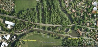 | Le Pont n°43 de la Weybridge Road vu par Google Earth. |