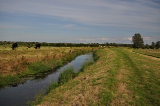 Les regards portés vers l'Est, la Parrett en aval du Pont de Thorney.