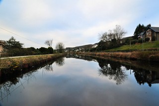 Les regards portés vers le Sud, le Canal de Crinan au Nord de l'Écluse d'Arrêt d'Ardrishaig. Prise de vue à la rive est depuis la coordonée NR 853 866.