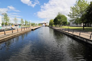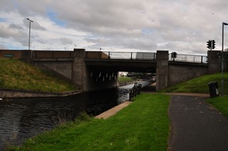 Les regards portés vers l'Est, le Canal de Forth & Clyde à l'Ouest du Pont de la Kilbowie Road.