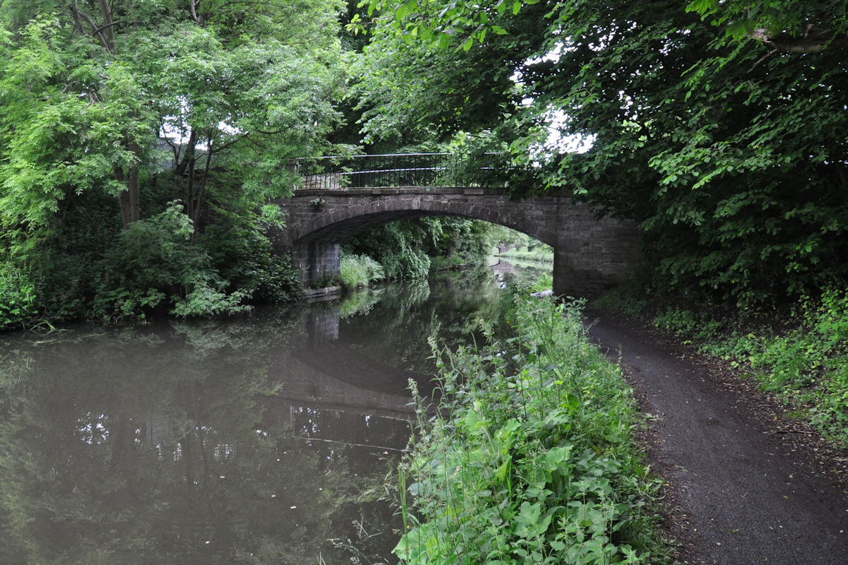 Looking to the East, the Union Canal seen from below West Hermiston Bridge No.12. At the back, Long Hermiston Bridge No.11.
