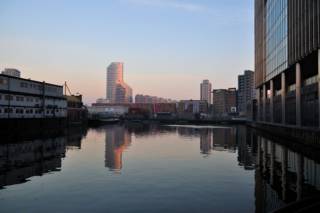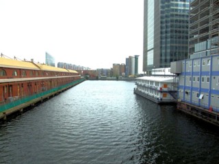Les regards portés vers l'Est, West India Docks - North Dock vu de la Gare Crossrail Canary Wharf.